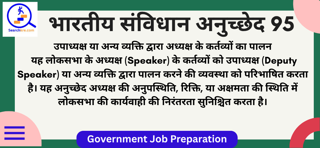अध्यक्ष या उपाध्यक्ष का पद रिक्त होना, त्यागपत्र, और हटाना अनुच्छेद 94 भारतीय संविधान के भाग V (संघ) के तहत आता है और यह लोकसभा के अध्यक्ष (Speaker) और उपाध्यक्ष (Deputy Speaker) के पद की रिक्ति, उनके त्यागपत्र, और हटाने की प्रक्रिया को परिभाषित करता है। यह अनुच्छेद लोकसभा की कार्यवाही में निरंतरता और संवैधानिक व्यवस्था सुनिश्चित करने के लिए इन पदों के प्रबंधन को नियंत्रित करता है।