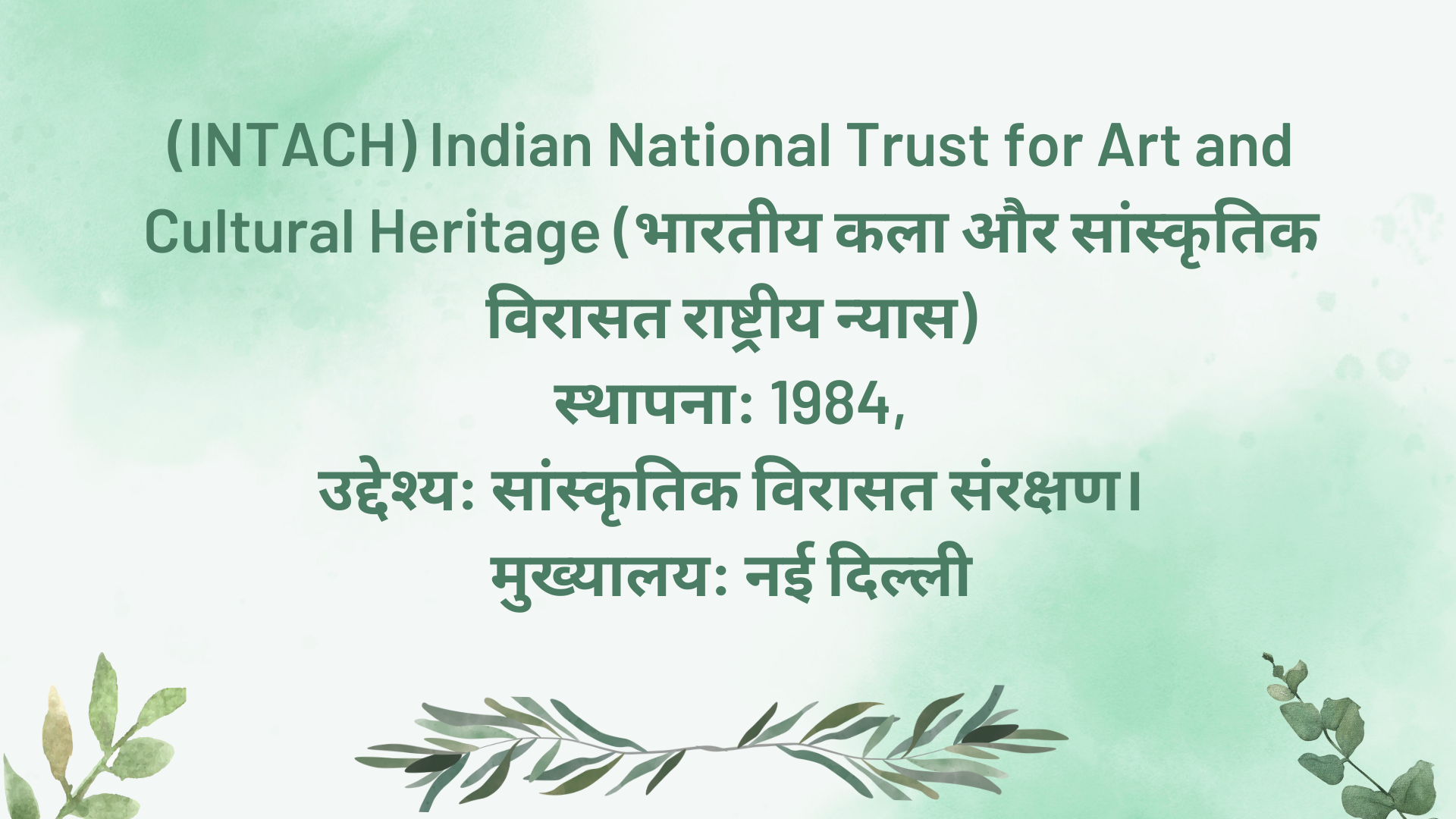 (INTACH) Indian National Trust for Art and Cultural Heritage (भारतीय कला और सांस्कृतिक विरासत राष्ट्रीय न्यास)