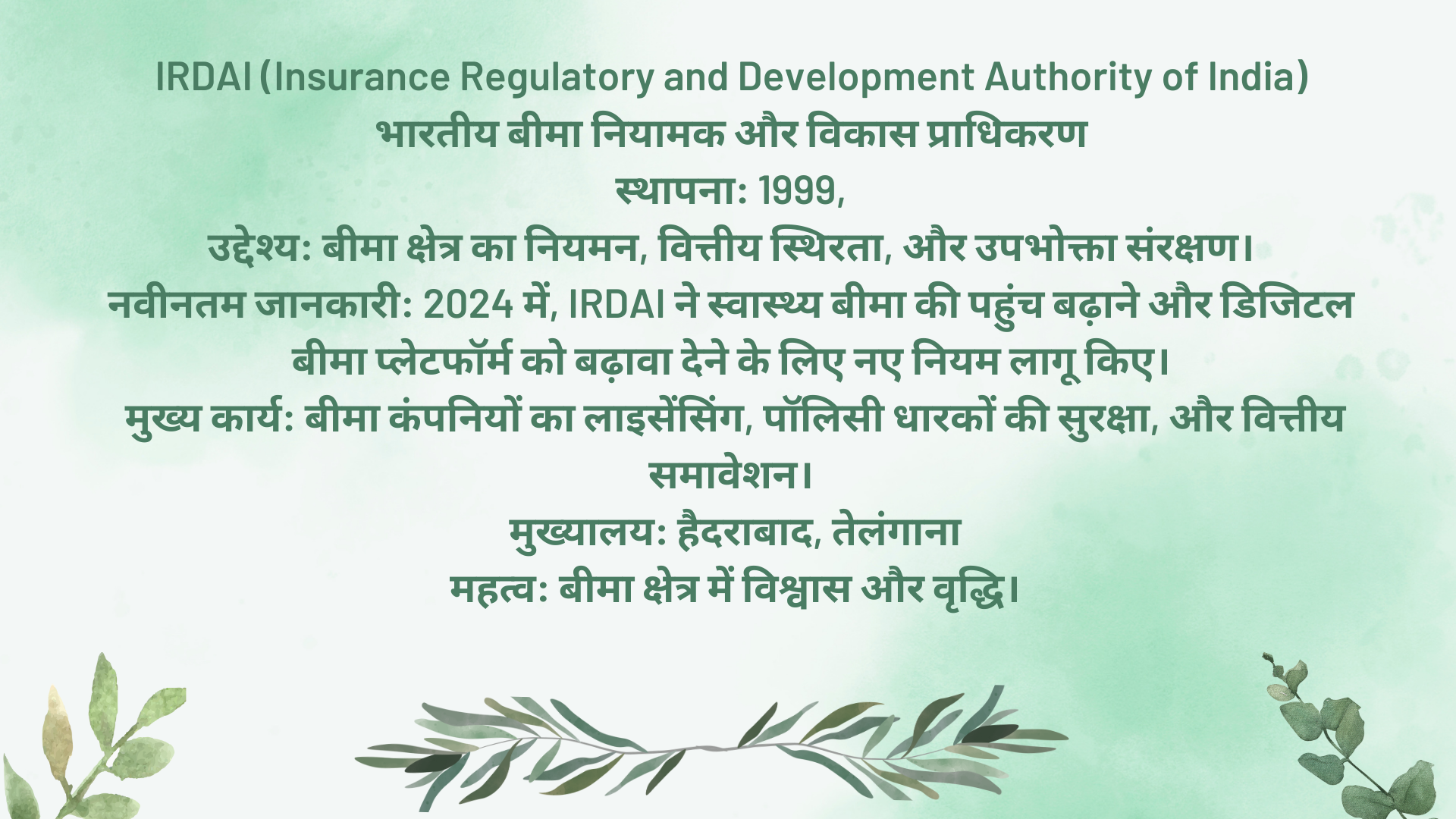 IRDAI (Insurance Regulatory and Development Authority of India) भारतीय बीमा नियामक और विकास प्राधिकरण