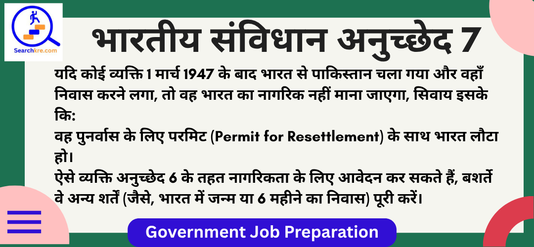 बाद में नागरिकता के नियमों को और स्पष्ट किया, लेकिन अनुच्छेद 7 विशेष रूप से 1947-1950 की अवधि के लिए प्रासंगिक था।