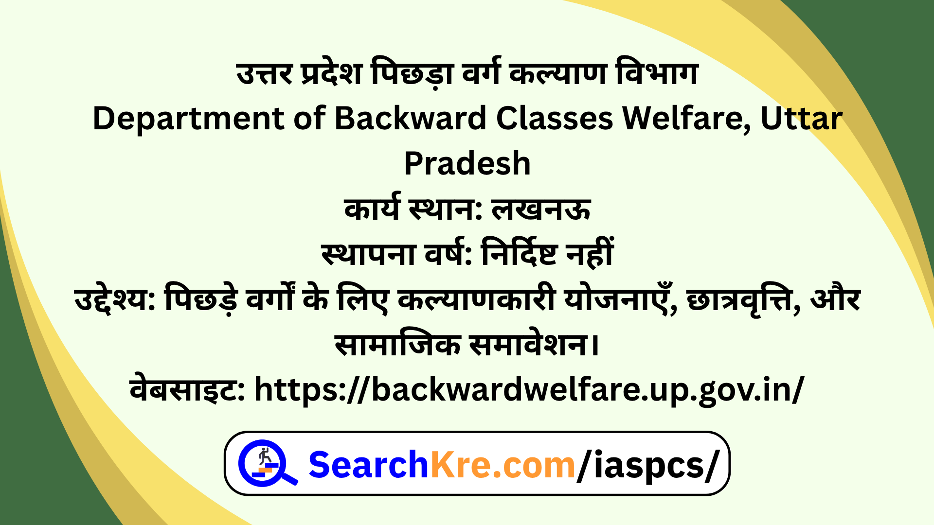 उत्तर प्रदेश पिछड़ा वर्ग कल्याण विभाग Department of Backward Classes Welfare, Uttar Pradesh