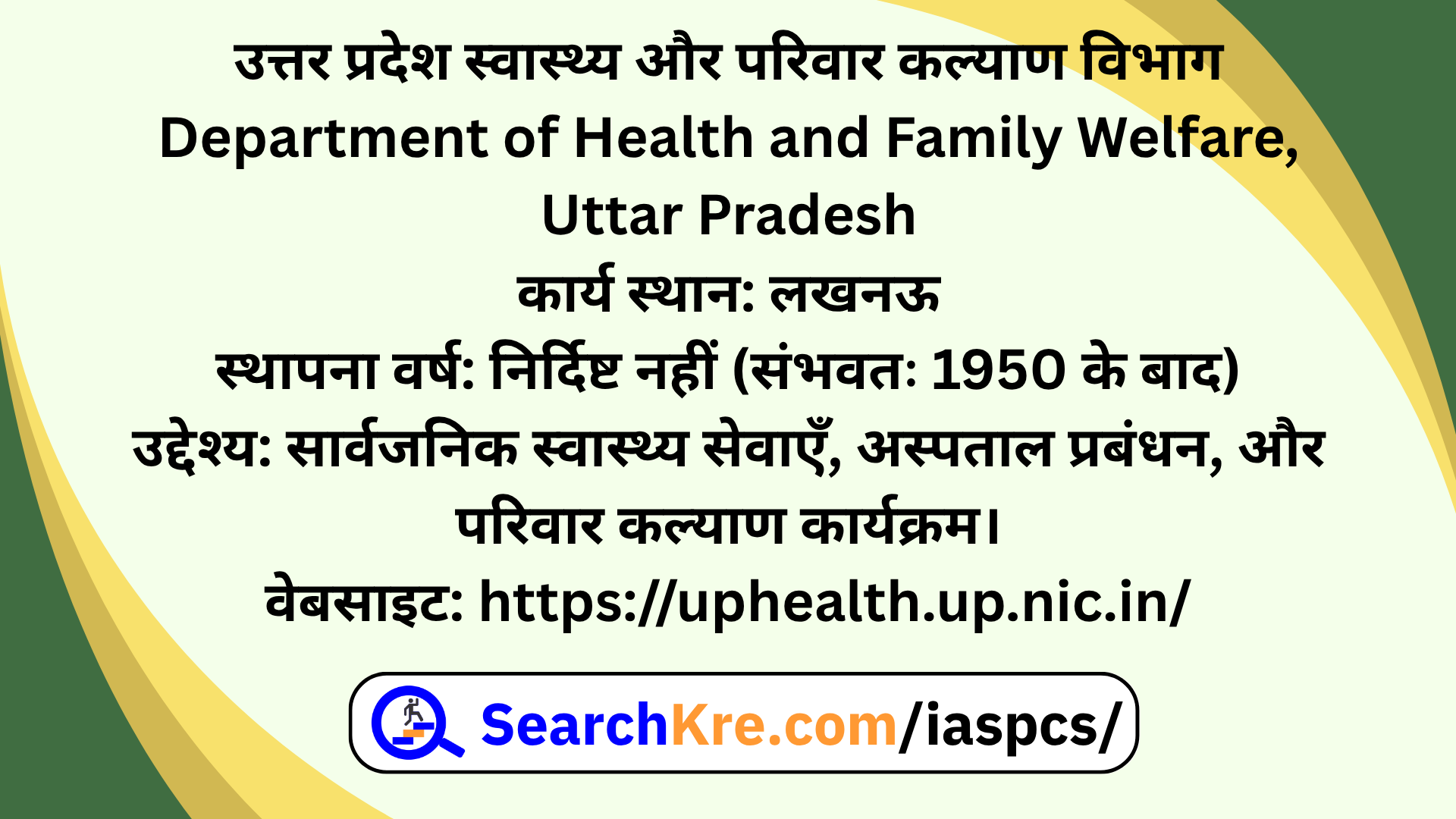 उत्तर प्रदेश स्वास्थ्य और परिवार कल्याण विभाग Department of Health and Family Welfare, Uttar Pradesh